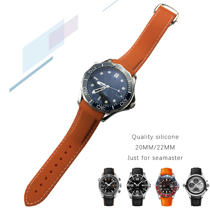 Special Offer 20mm 22mm correa de reloj de alta calidad correa de reloj de goma de silicona extremo curvo deportes especial para Omega Seamaster reloj para hombres Discount 10% Today!