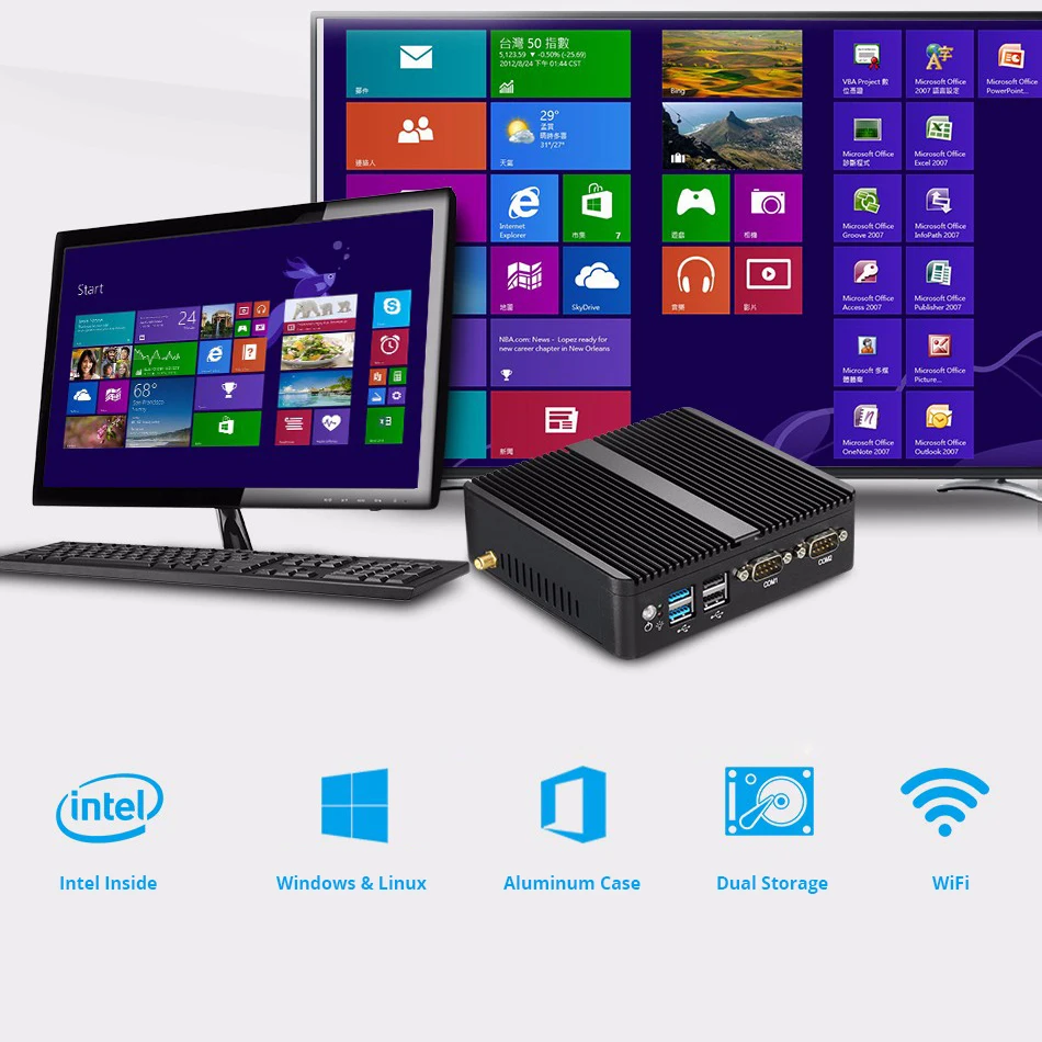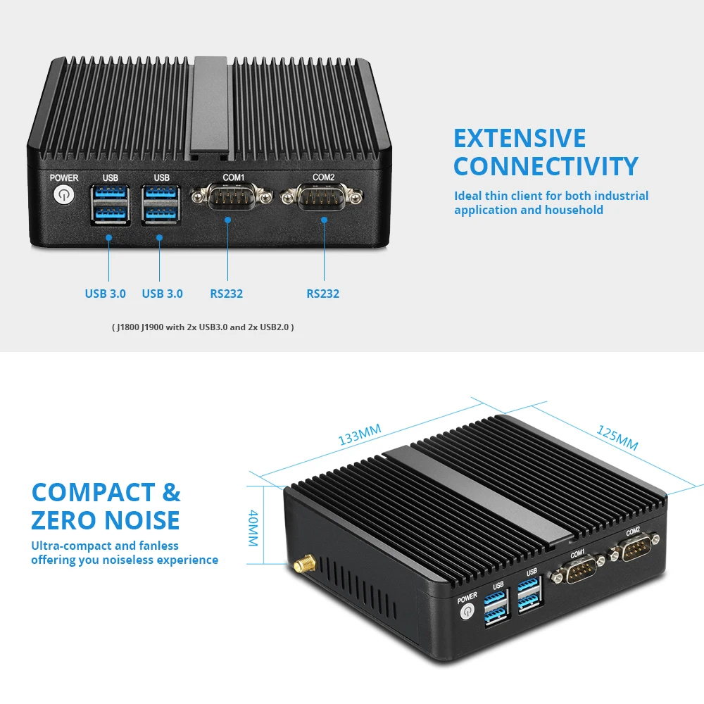 Product Name: Mini PC Windows 10 Intel Celeron 3755 J1800 J1900 Pentium 3805U Miciro computadora 2 * Gigabit Ethernet 2 * RS232 4 * USB PC Industrial