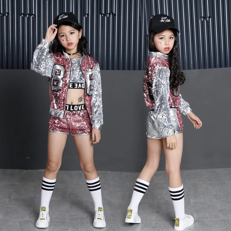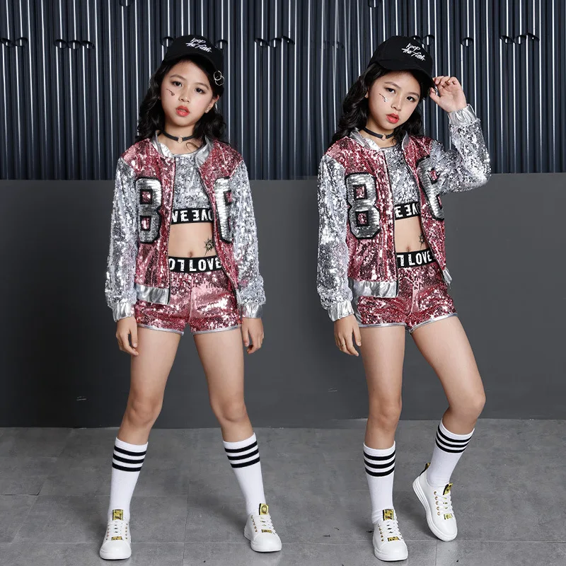 . (20% Off) Comprar Tammy Ada Kids Girl lentejuelas bailando Rosa chaqueta de plata abrigo corto 3 uds conjuntos hip hop Jazz Ropa de baile niños conjuntos Online Baratos.