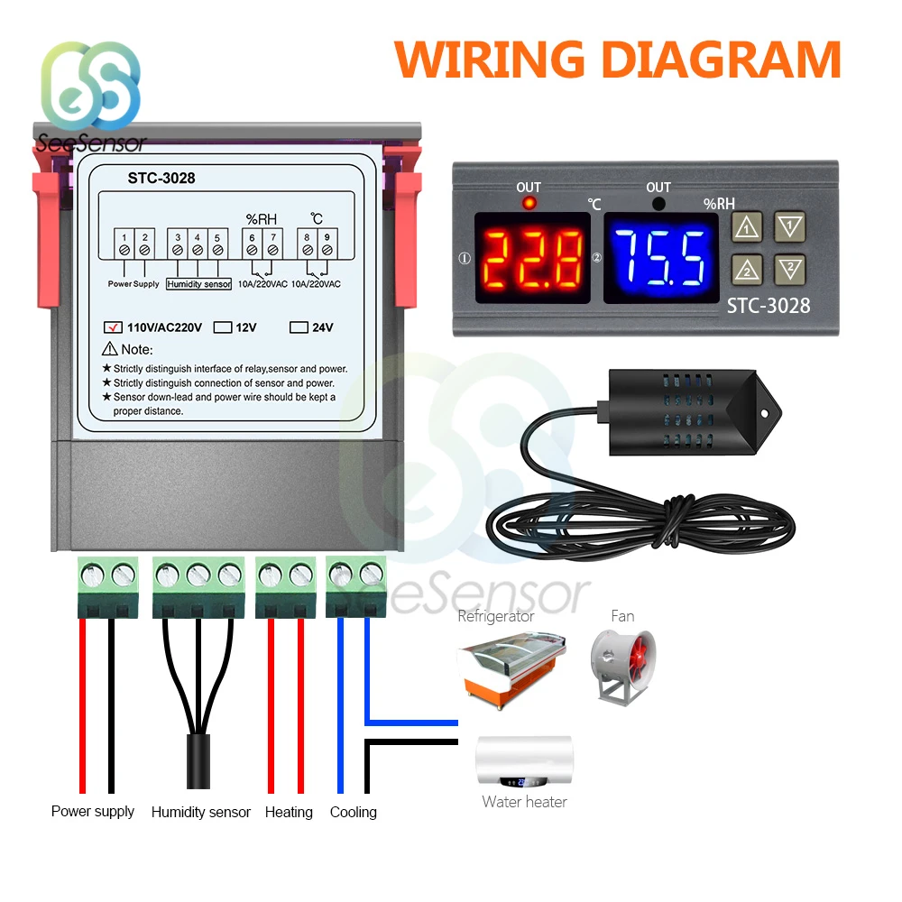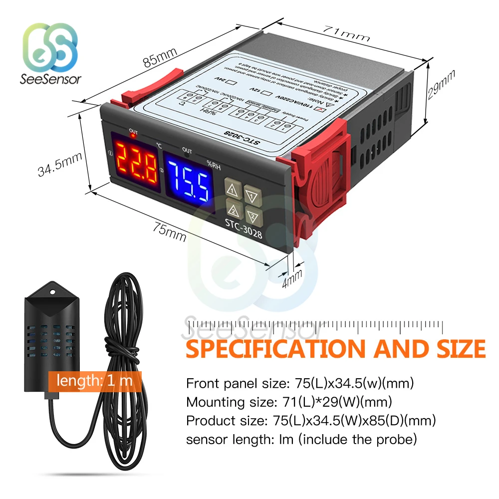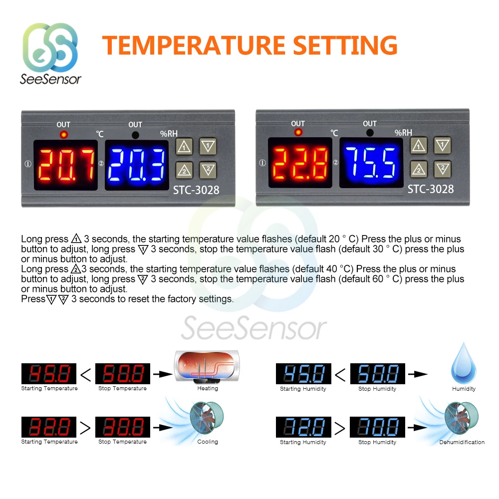 Product Name: STC 3028 controlador de humedad Digital Dual controlador de temperatura para termostato de nevera regulador 12V 24V 220V termómetro