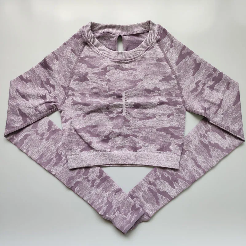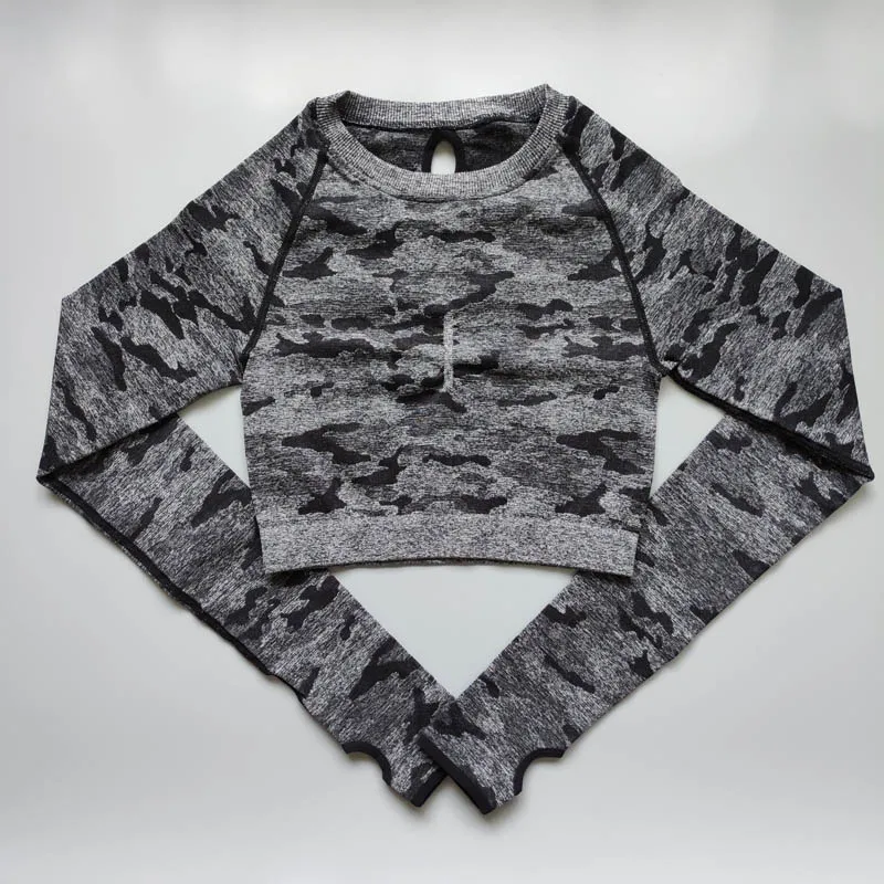Product Name: Nepoagym mujeres Camo sin costura recortada superior sin costura manga larga superior ropa deportiva para mujeres camisa de yoga y gimnasio cultivo superior entrenamiento