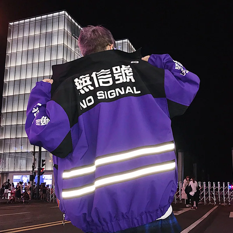 Special Offer Chaqueta reflectante del alfabeto chino NO SIGNAL fidgety para hombres primavera y otoño Casual cortavientos Hip Hop prendas de abrigo y abrigos clásicos Discount 50% Today!