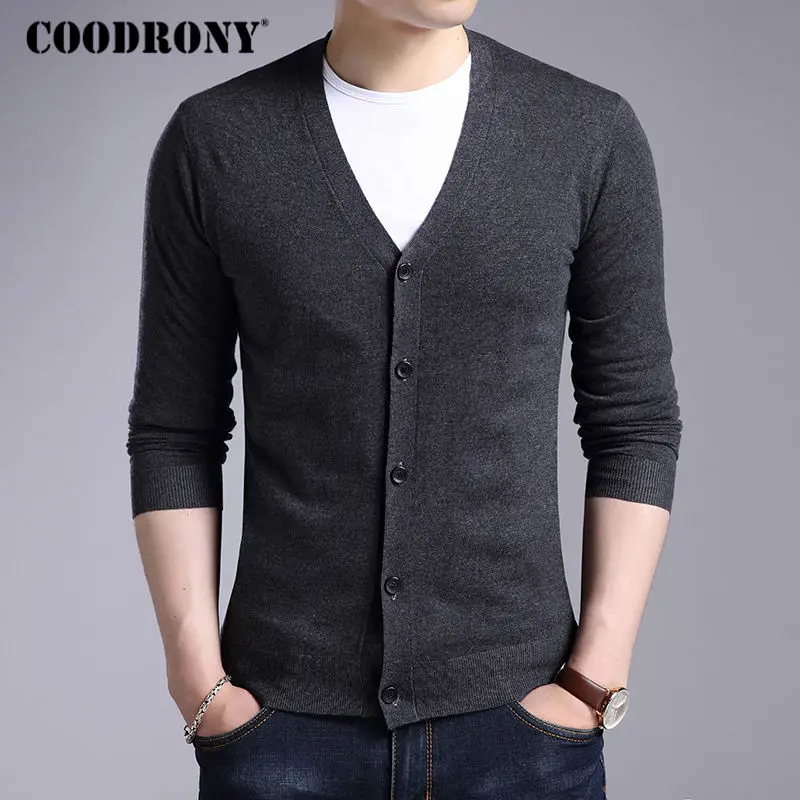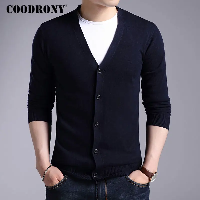 Special Offer COODRONY Cardigan hombre 2019 otoño invierno suave cálido suéter de lana de Cachemira hombre Color puro Casual Chaquetas de punto con cuello en V superior 7402 Discount 51% Today!