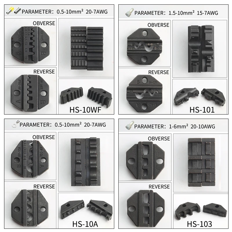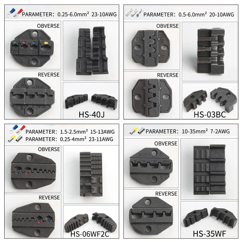 Product Name: Colores HS 03BC alicates de prensado Paquete de kit de mordazas para terminales, juego de herramientas de prensado multiherramienta, alicates de prensado de terminales de horquilla de pala de tubo