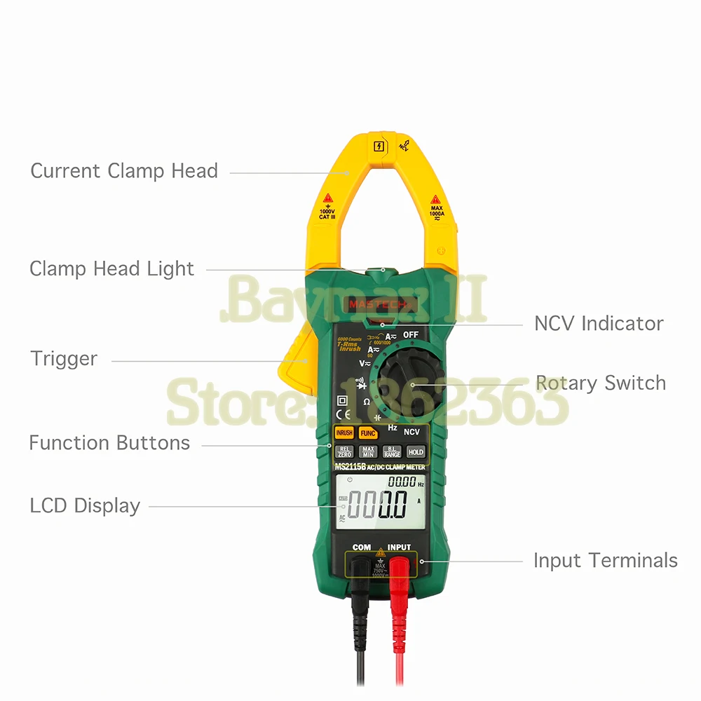 Product Name: MASTECH MS2115B True RMS Digital CA CC pinza medidores capacitancia frecuencia probador con interfaz USB y NCV