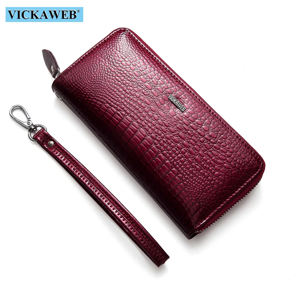 Special Offer VICKAWEB bolso de mano cartera Cartera de cuero genuino mujer larga cremallera mujeres carteras tarjetero embrague damas carteras AE38 Discount 50% Today!