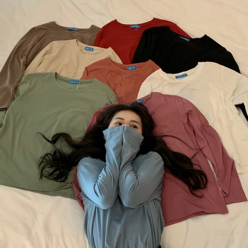 Product Name: Blusas coreanas de moda Color caramelo Tops otoño 2019 mujeres de cuello redondo de manga larga camisetas sueltas básicas