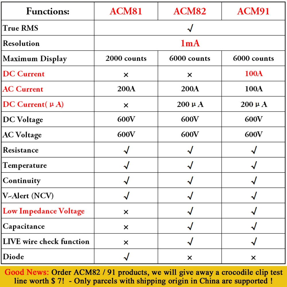 Product Name: Mini pinza Digital medidores BSIDE ACM Series True RMS corriente CA voltaje Ohm temperatura capacitancia Hz NCV probador amperímetro multímetro