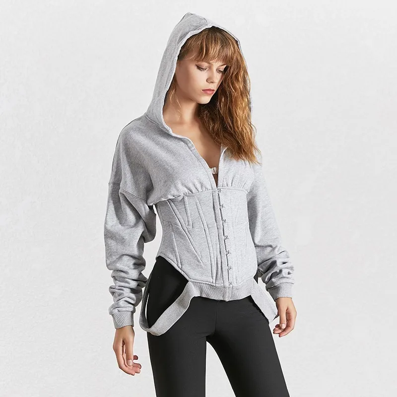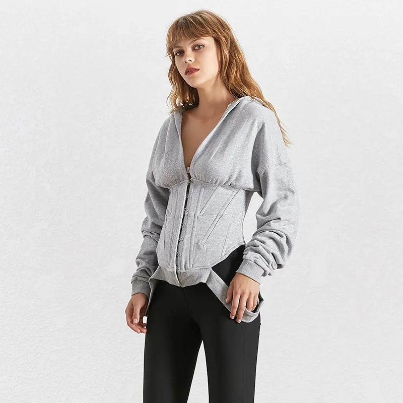 Product Name: Sudadera con capucha de manga larga TWOTWINSTYLE para mujer con gancho delgado y cuello en V cerrado ropa Casual femenina 2019 otoño nuevos tamaños grandes