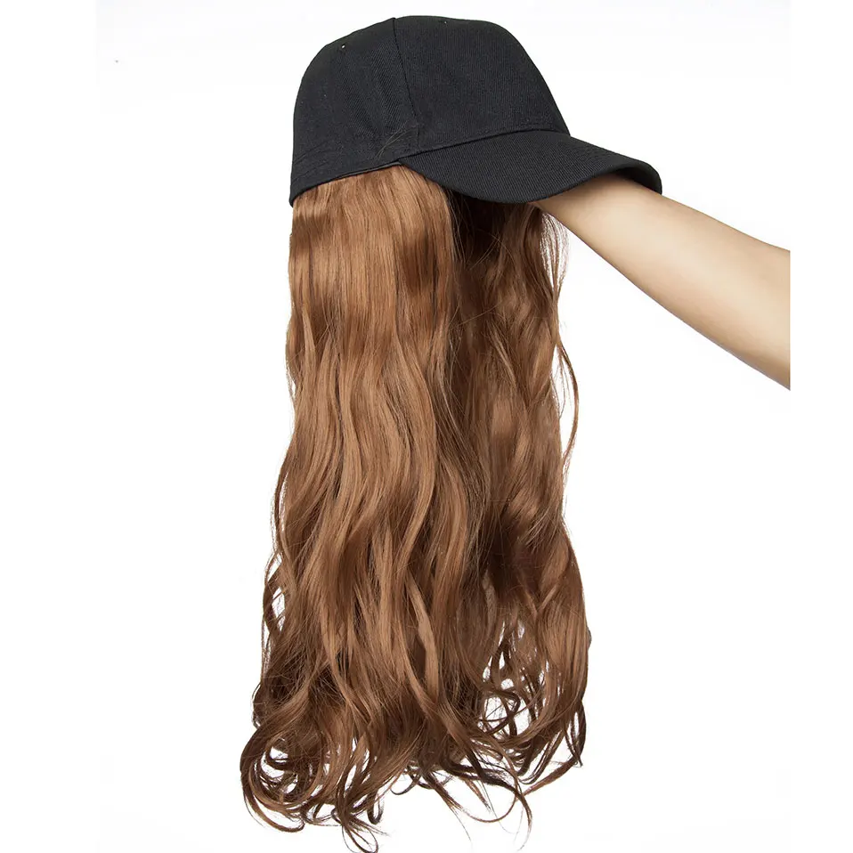 Product Name: SNOILITE extensiones de cabello ondulado de 16 pulgadas con gorra negra extensión sintética larga gorra integrada con cabello para fiesta de chicas