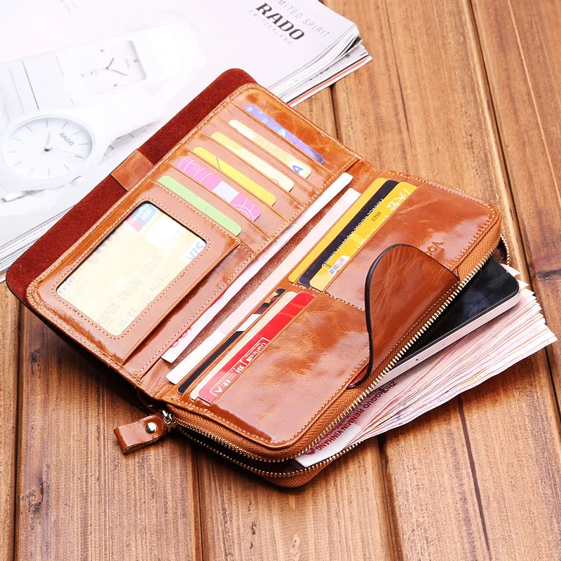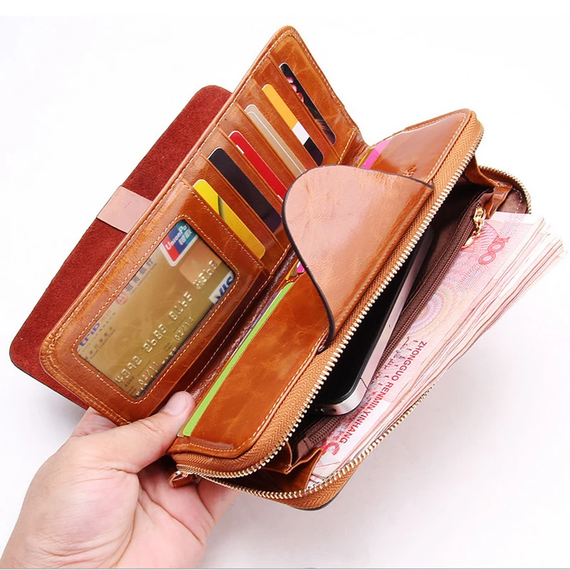 Special Offer Gran oferta primera capa de cuero de vaca billetera con cremallera femenina cuero genuino largo diseño amantes hombres mujeres carteras teléfono móvil embrague Discount 30% Today!
