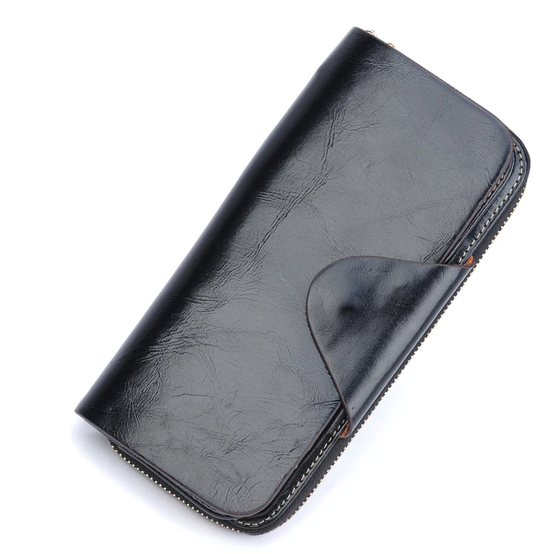 Product Name: Gran oferta primera capa de cuero de vaca billetera con cremallera femenina cuero genuino largo diseño amantes hombres mujeres carteras teléfono móvil embrague