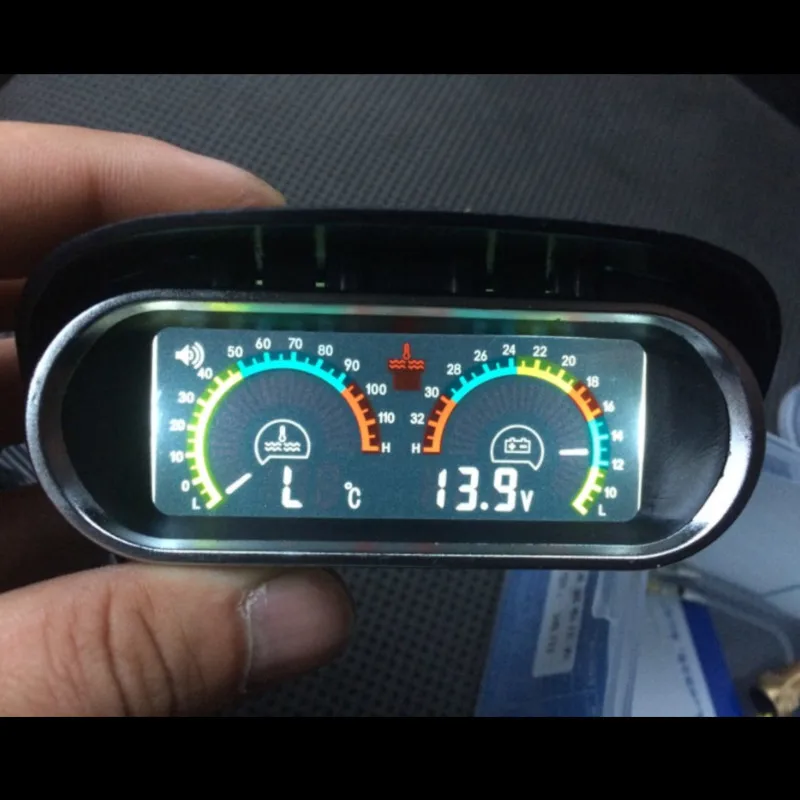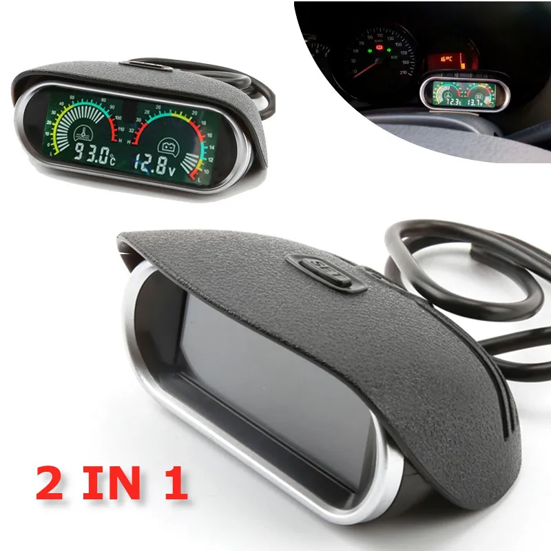 Product Name: 2 en 1 12 v 24 v LCD coche Digital Horizontal calibrador de temperatura del agua medidor voltímetro indicadores de voltaje con Sensor de temperatura