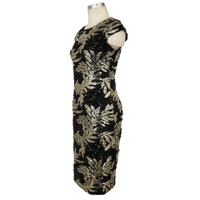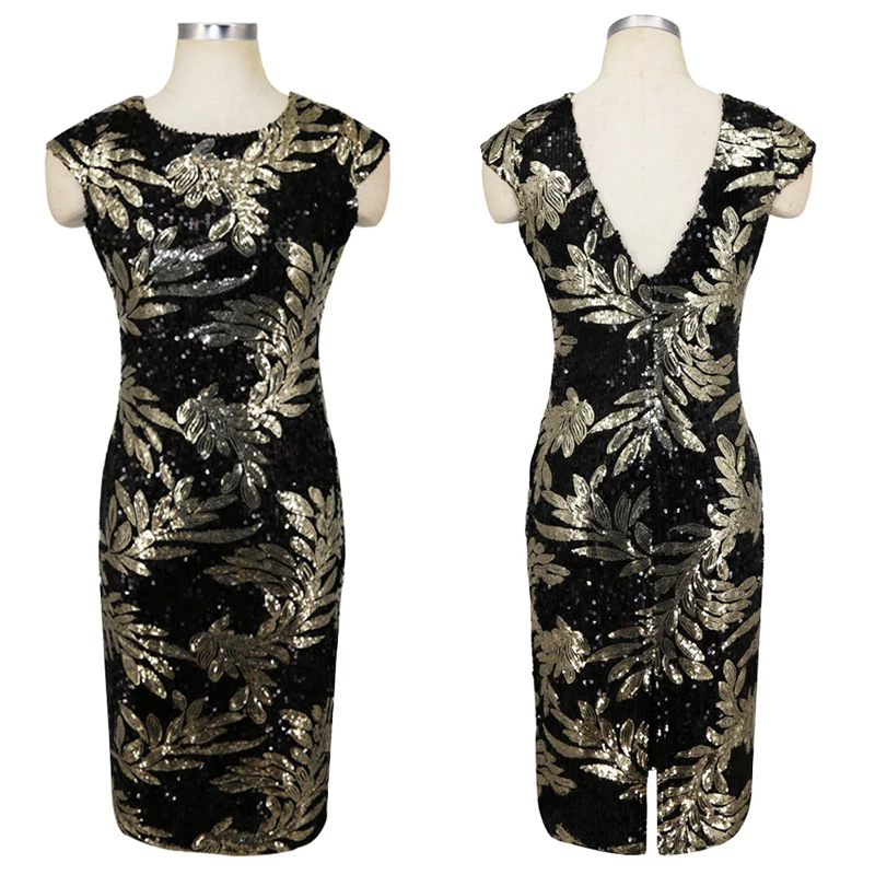 Product Name: Ropa de mujer OTEN Sexy verano manga casquillo hoja lentejuelas Patchwork sin espalda de fiesta de noche vestido elegante bata mujer moulante 2018