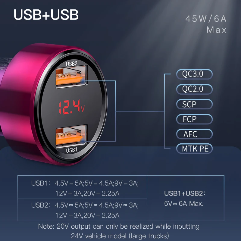 Product Name: Cargador de coche Baseus 45w Quick Charge 4,0 3,0 USB para iPhone Xiaomi Samsung QC4.0 QC3.0 QC tipo C PD cargador de teléfono móvil rápido para coche
