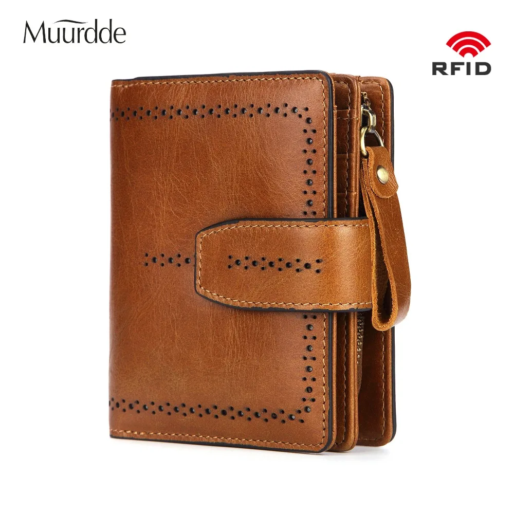 Special Offer 2019 Muurdde RFID moda ahueca hacia fuera la cartera de cuero genuino de las mujeres y los monederos monedero femenino pequeño Portomonee bolsa de dinero de señorita Discount 46% Today!