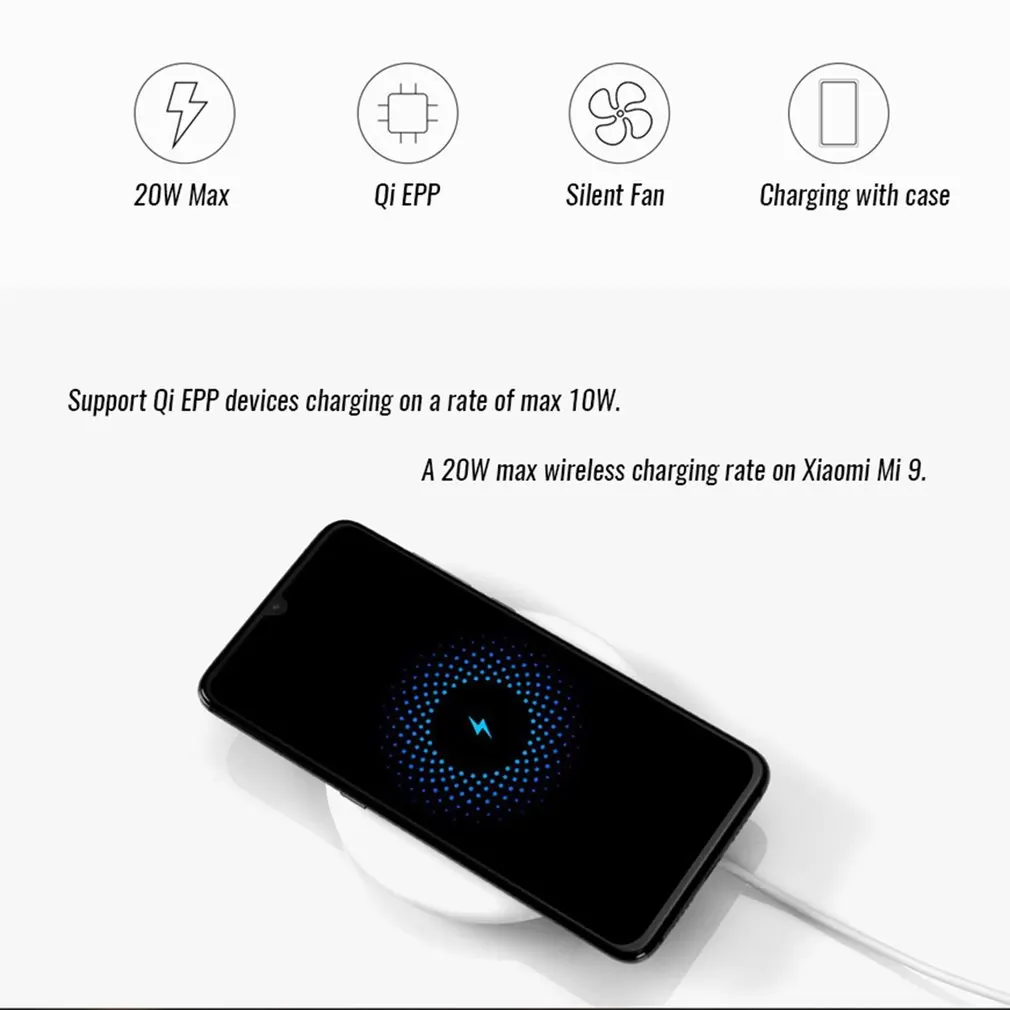 Product Name: Original Xiaomi cargador inalámbrico 20W Max para mi 9 (20 W) mi X 2 S 3 (10 W) Qi PPE teléfono móvil Compatible con (5 W) múltiples seguro