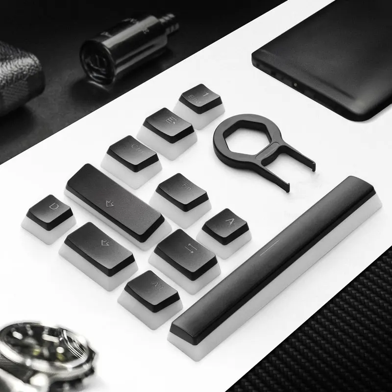 Product Name: Hait Keycaps doble disparo retroiluminado PBT Pudding Keycap Set con tirador para DIY Cherry MX Teclado mecánico, blanco y negro
