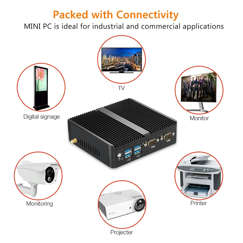 Product Name: Mini PC Celeron J1900 Quad Core Windows 10 Dual LAN 2 * COM Mini computadora sin ventilador Celeron J1800 N2830 NetTop 300M WIFI HDMI VGA